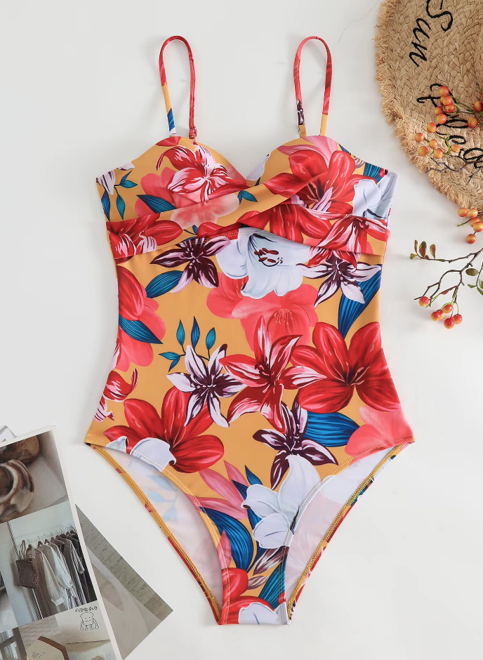 Spaghetti Strap Push Up Swimsuit 2025 Verenice with Floral Pattern