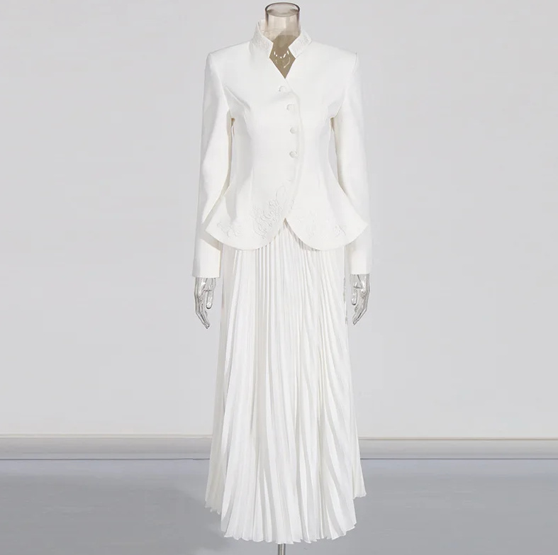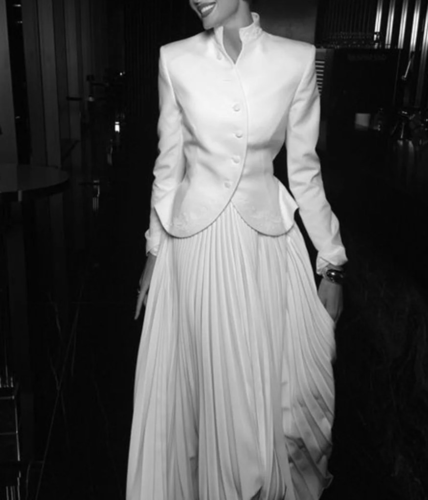 Registry Office Outfit Celine Bridal Two-Piece in White Pleated Skirt with Blazer in Set