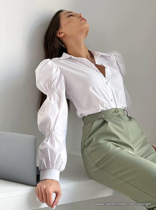 Elegante Damen Bluse Blue in Weiß mit Puffärmel