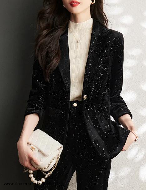 Eleganter Samt Hosenanzug für Damen in Schwarz