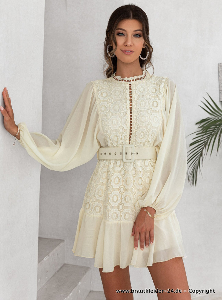 Elegantes Langarm Minikleid mit Rundhalsausschnitt für die Braut