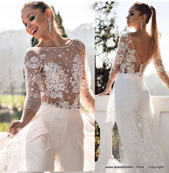 Hochzeits Overall Jumpsuit Onepice für die Braut in Weiß mit Spitze