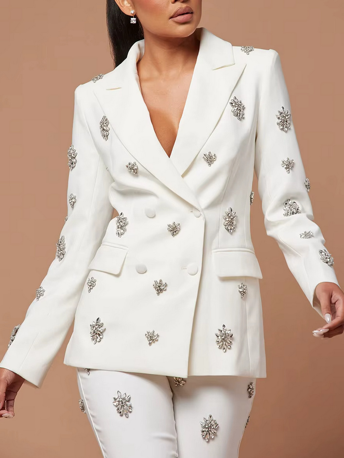 Registry Office Outfit Ciara Trouser Suit with Rhinestone Flowers in White