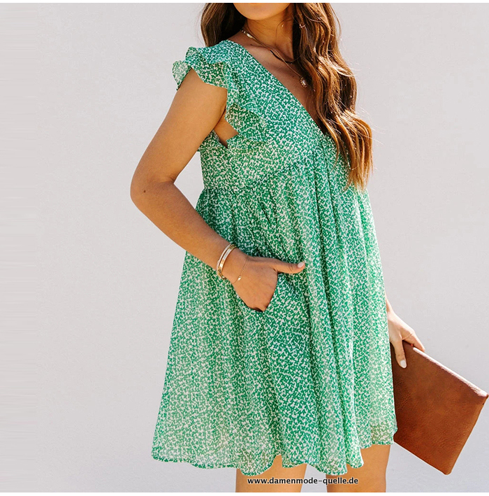 Babydoll V-Ausschnitt Rüschen Minikleid