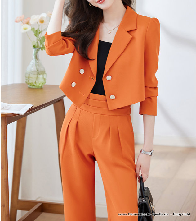 Eleganter Hosenanzug für Damen in Orange mit Kurzer Blazer