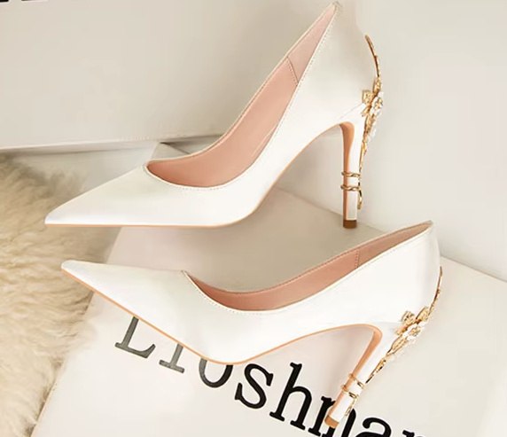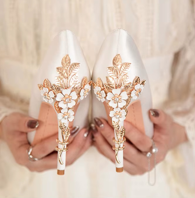 Luxury Flower High Heels Wedding Shoes Fibi White