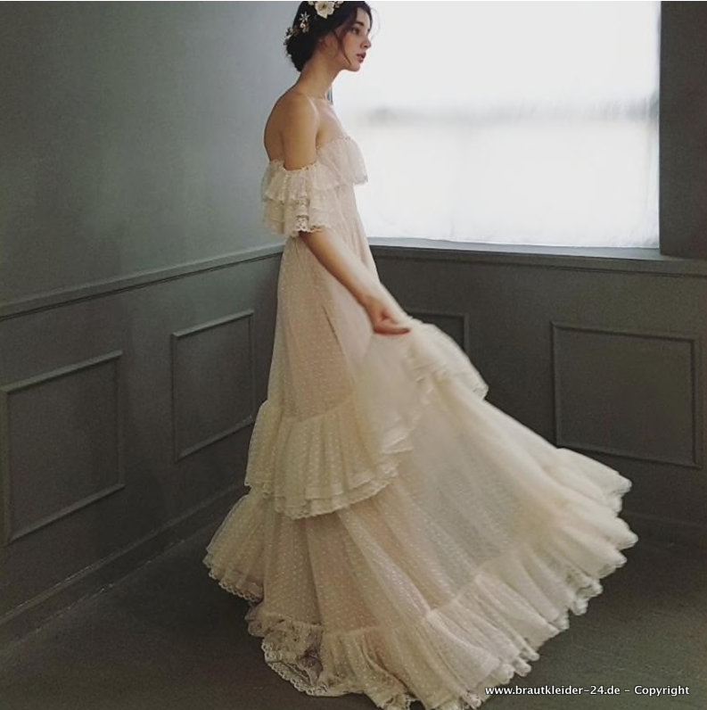 Schulterfreies Empire Brautkleid Radegund Bodenlang