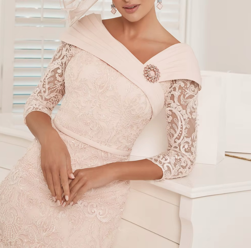 Pencil mother of the bride dress Friederike with lace sleeves Calf-length in champagne