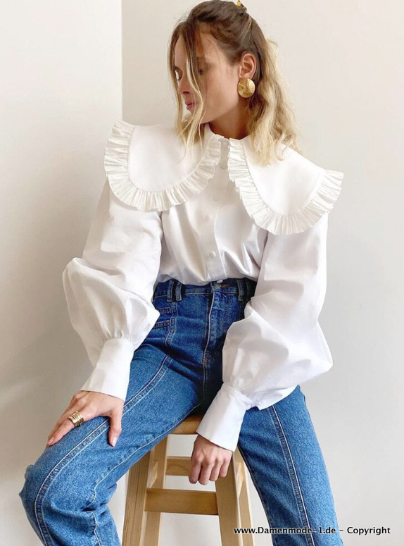 Damen Bluse Elegant mit Peter Pan Kragen