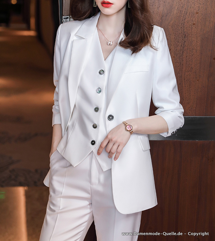 I Line Business Trouser Suit Three-Piece with Vest in White
