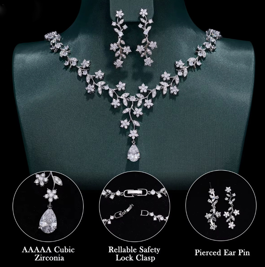 Flower Bridal Jewelry Set Flavia Silver Necklace with Earrings
