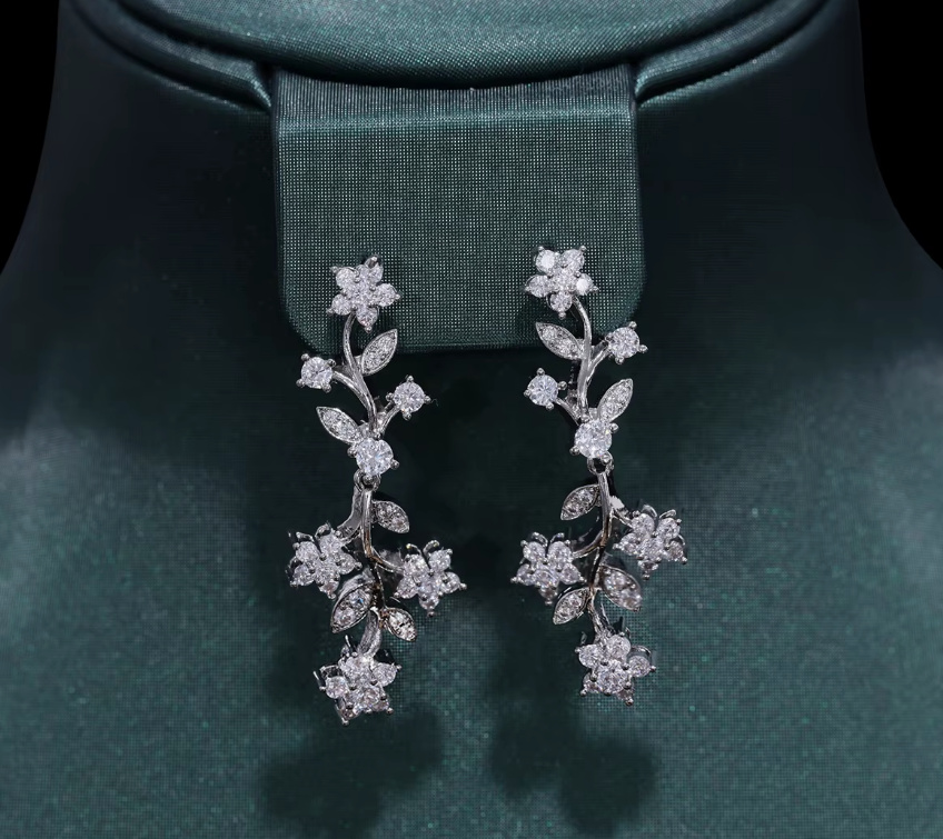 Blumen Brautschmuck Set Flavia Silber Halskette mit Ohrringe