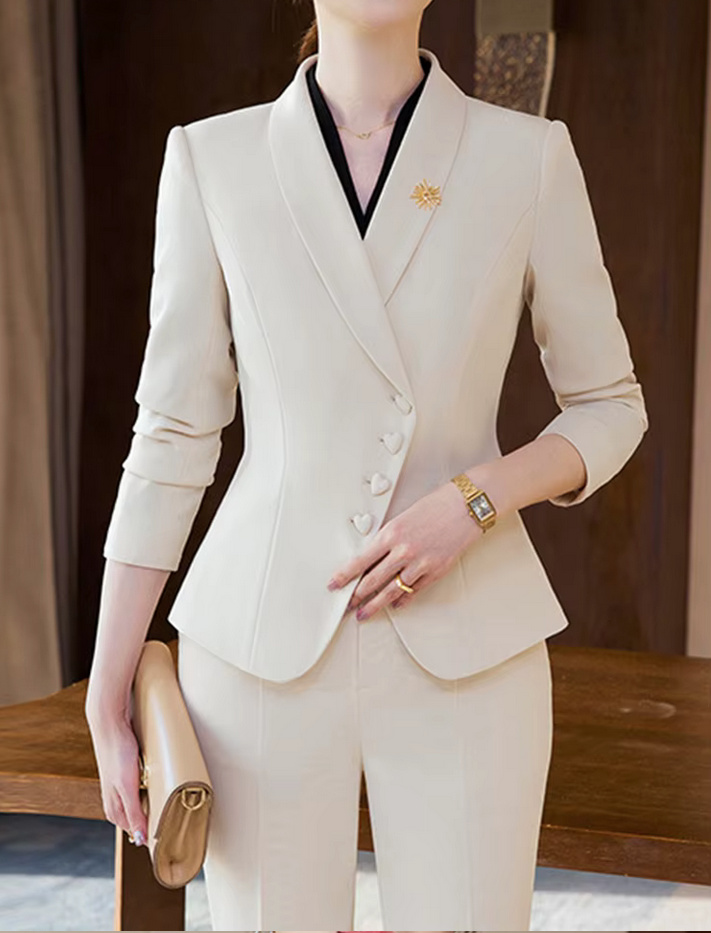 Elegant registry office trouser suit Cendrine for the bride with heart buttons