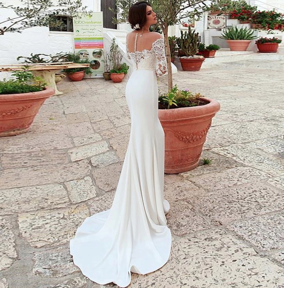 Fit and Flare Long Sleeve Wedding Dress Dafne Off Shoulder with Lace and Train