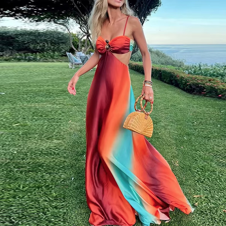 Colorful Maxi Chiffon Summer Dress 2025 with Spaghetti Straps