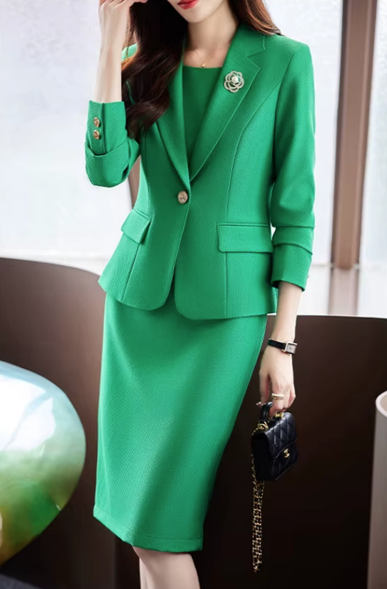 I Line Business Ladies Set 2025 Sleeveless Dress with Blazer in Green