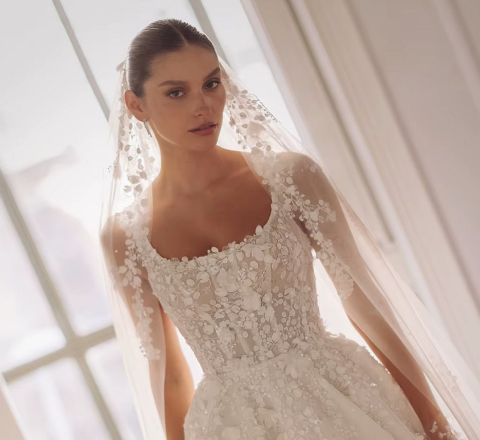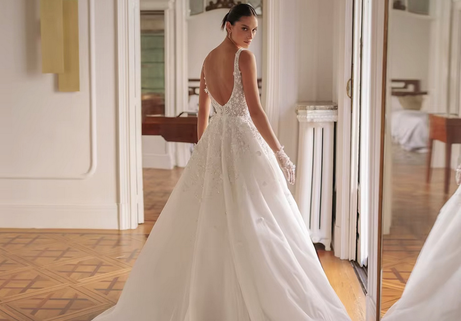 A Line Wedding Dress 2025 Cettina Classic with Lace and Train Backless