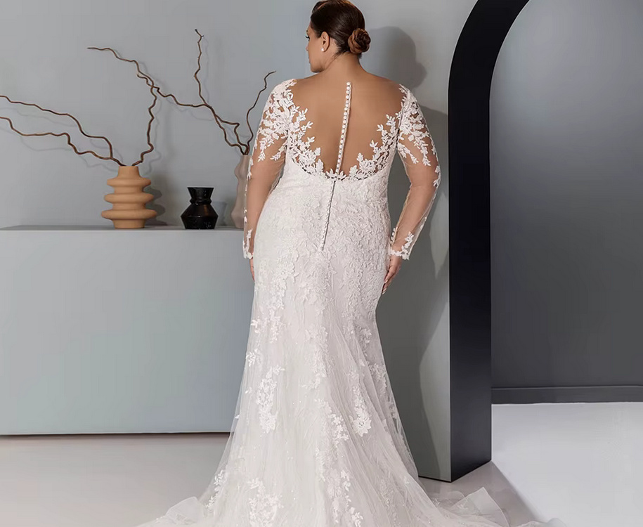 I Line Wedding Dress 2025 Constanze with lace sleeves and train