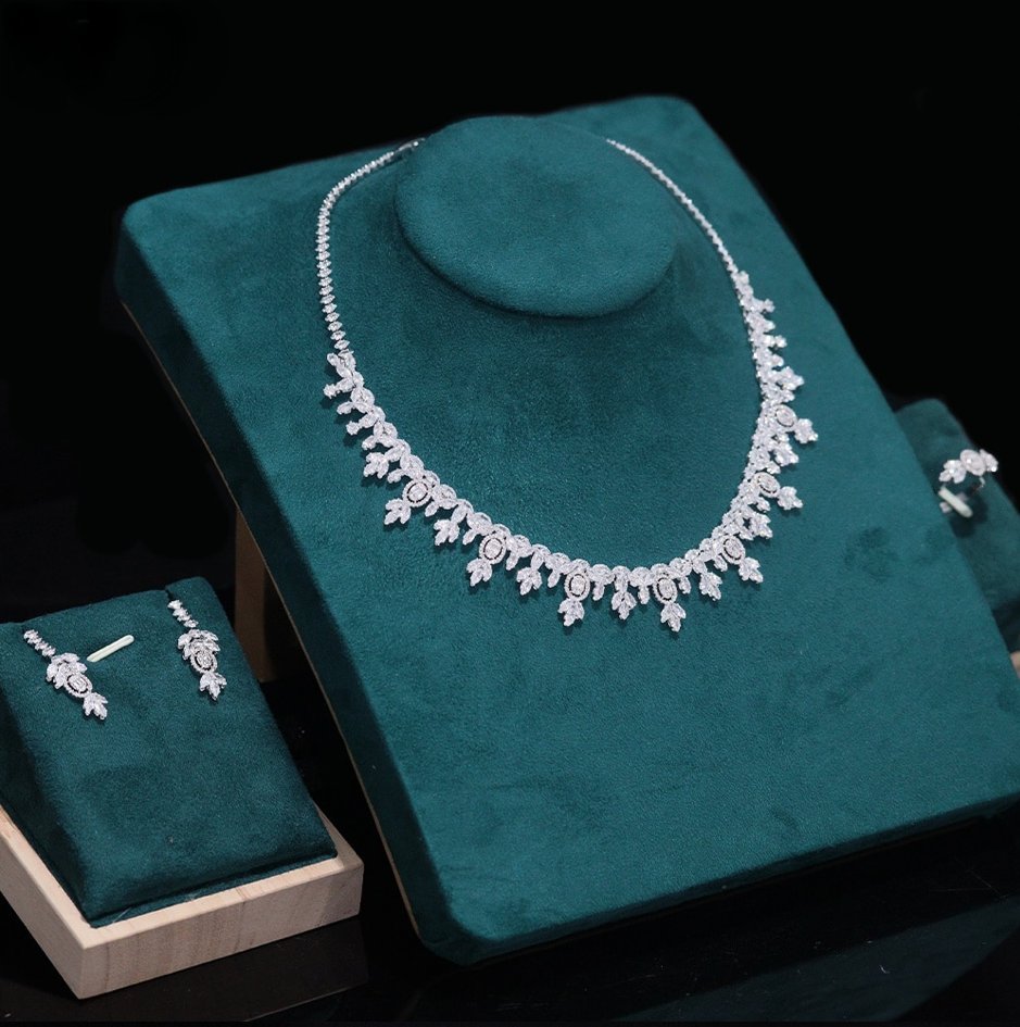 Crystal Zirconia Bridal Jewelry Set Caren Four-Piece in Silver