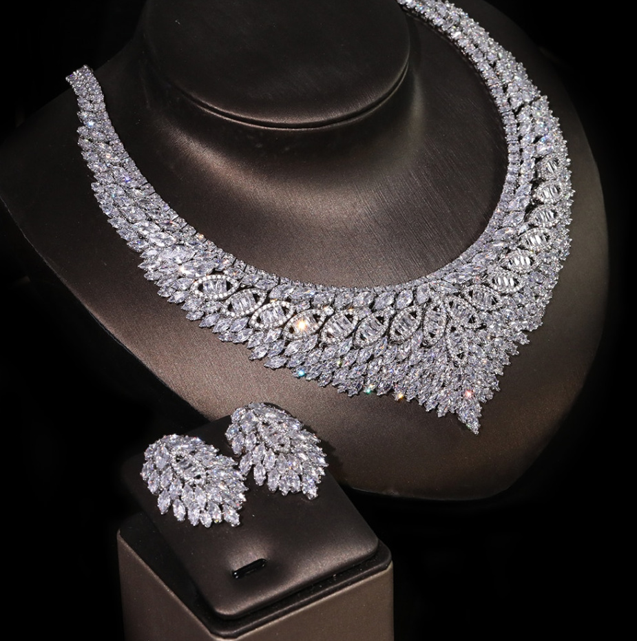 Luxury Bridal Jewelry Set Colette Tiara Necklace Bracelet Earrings Ring in Set