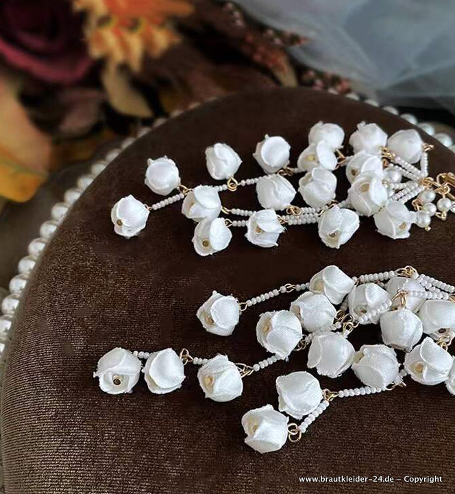 Perlen Blumen Braut Ohrringe Brautschmuck Weiß