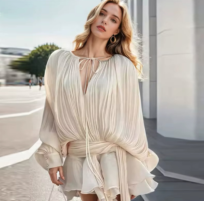 Sexy Mini Summer Outfit 2025 Skirt with Blouse in Set Beige