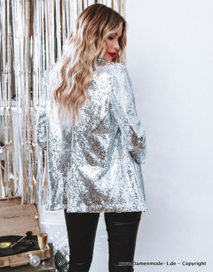 Glitzer Pailletten Damen Blazer in Silber Elegant