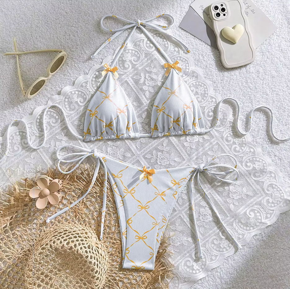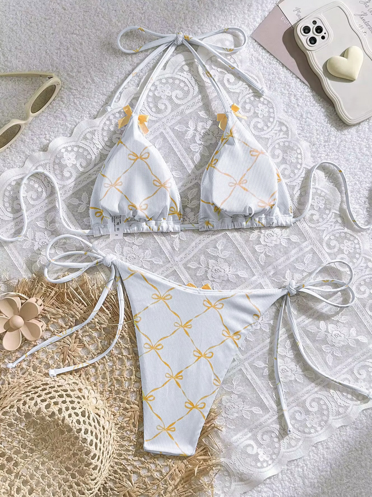 Halterneck Bikini 2025 Vincenza in white with bow pattern