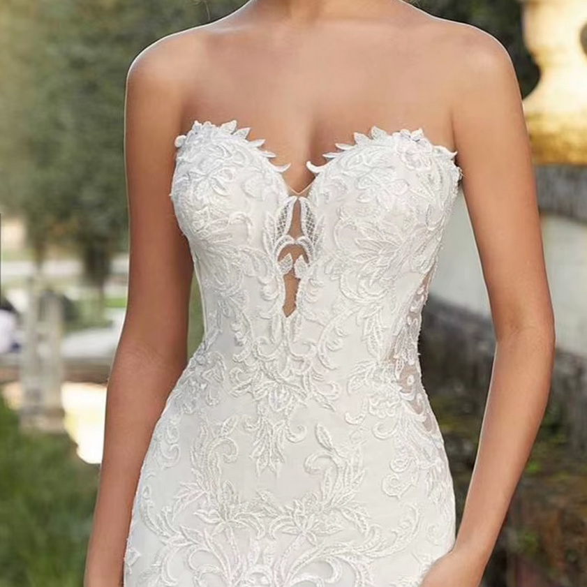 Mermaid wedding dress Charlotta with flowers and bolero jacket