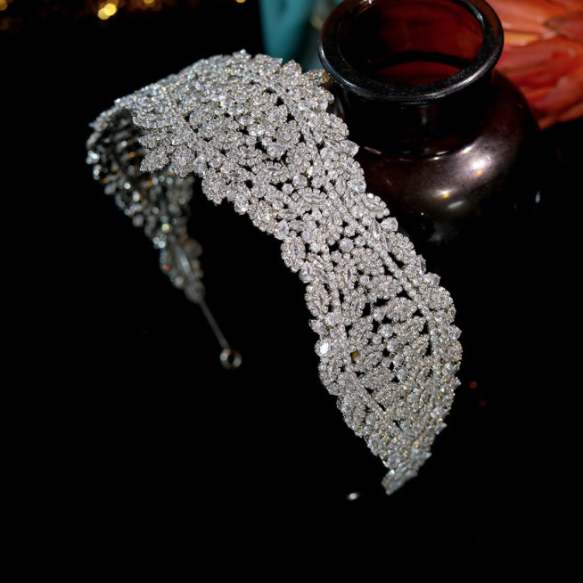 Retro Tiara Baroque Zirconia Bridal Headband Headpiece in Silver