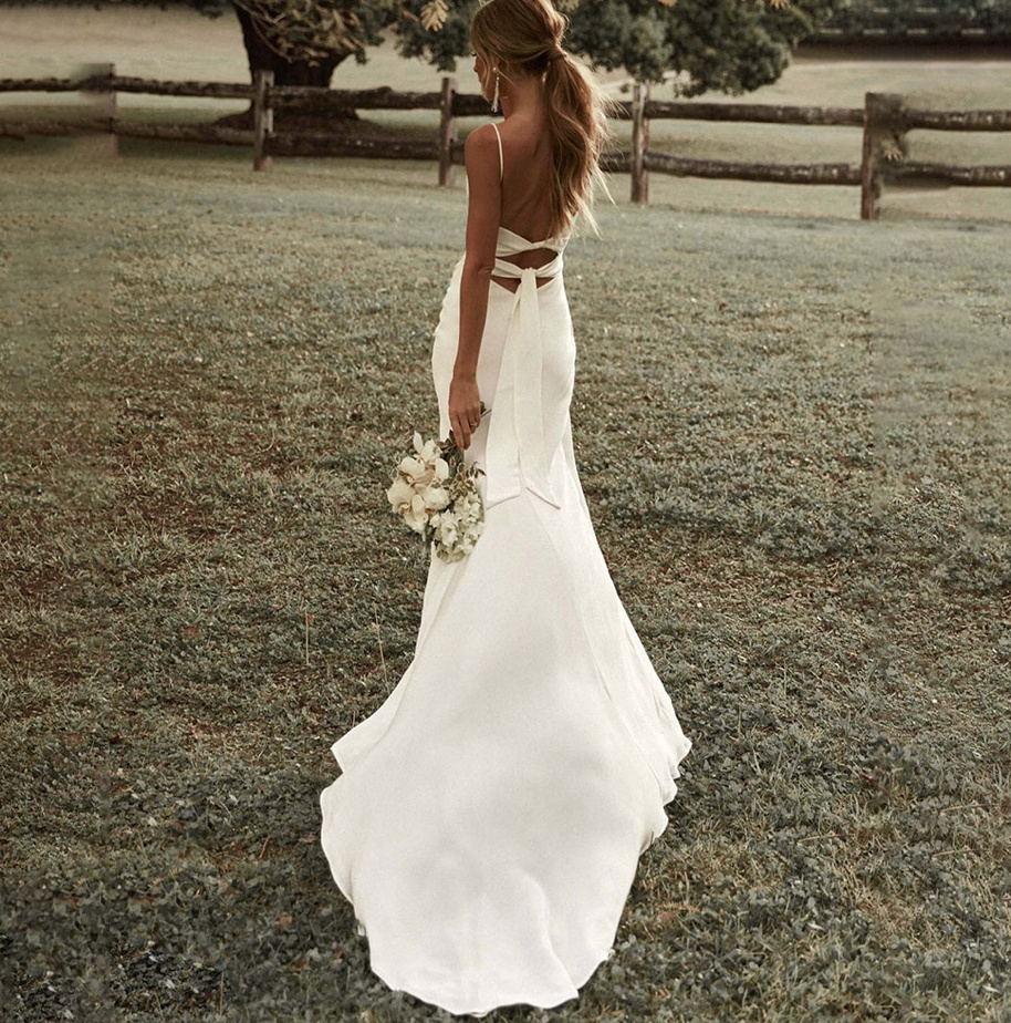 I Linie Spaghettiträger Brautkleid Celina mit Schleppe