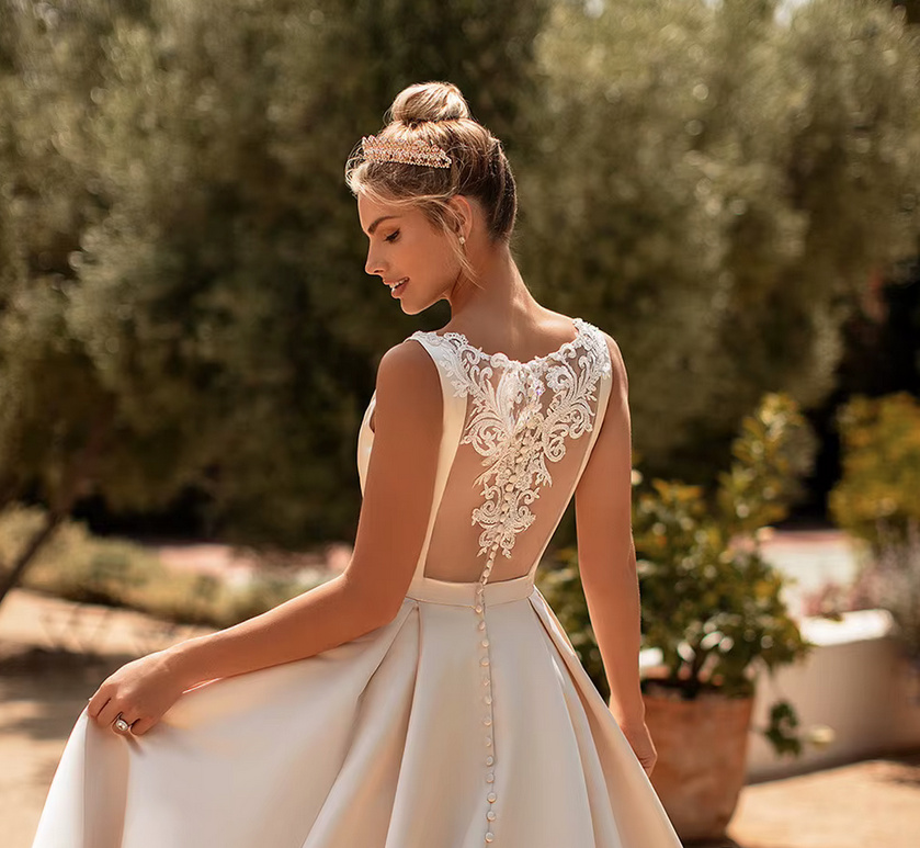 A Line Satin Wedding Dress Cariba Classic with Lace Back