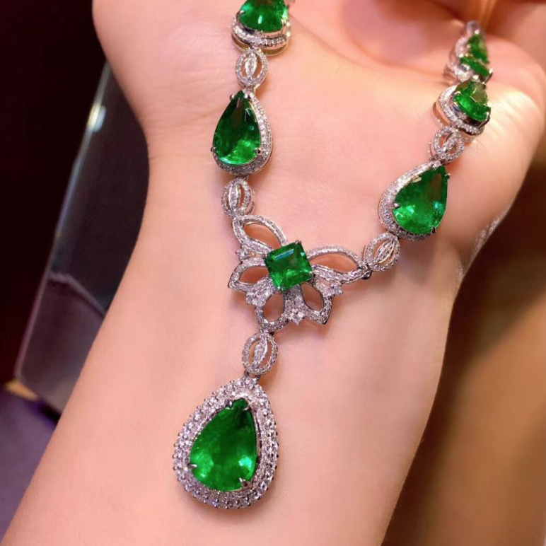 Bridal Crystal Necklace Dominika Classic in Silver Green