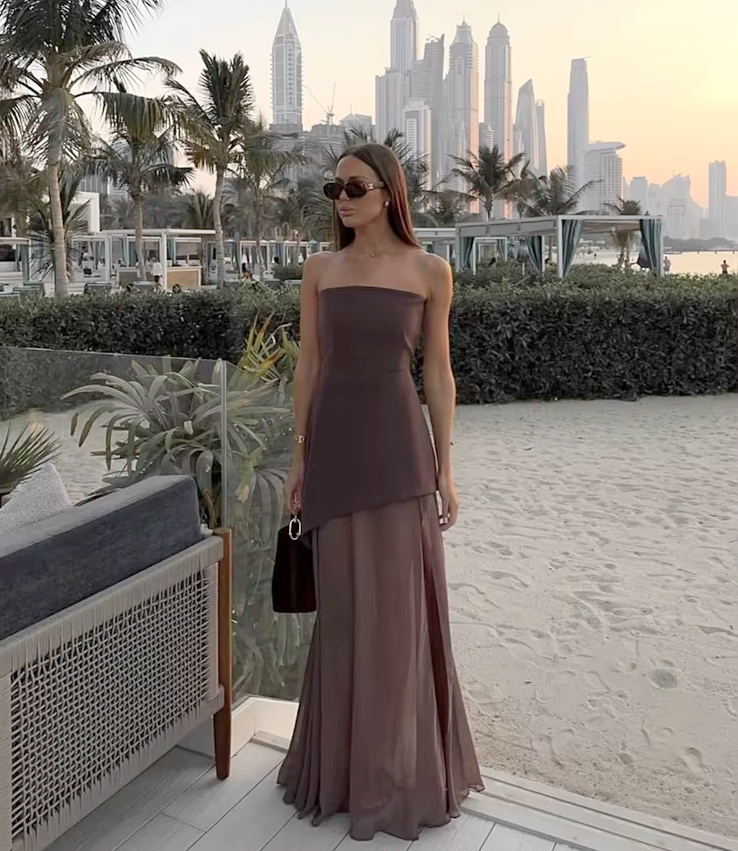 Elegantes Schulterfreies Kleid 2025 mit Stola in Braun