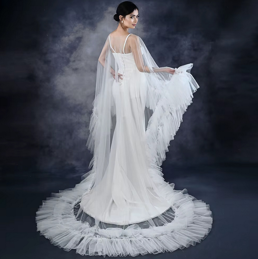 Tulle Bridal Cape Cilla with Ruffles and Train
