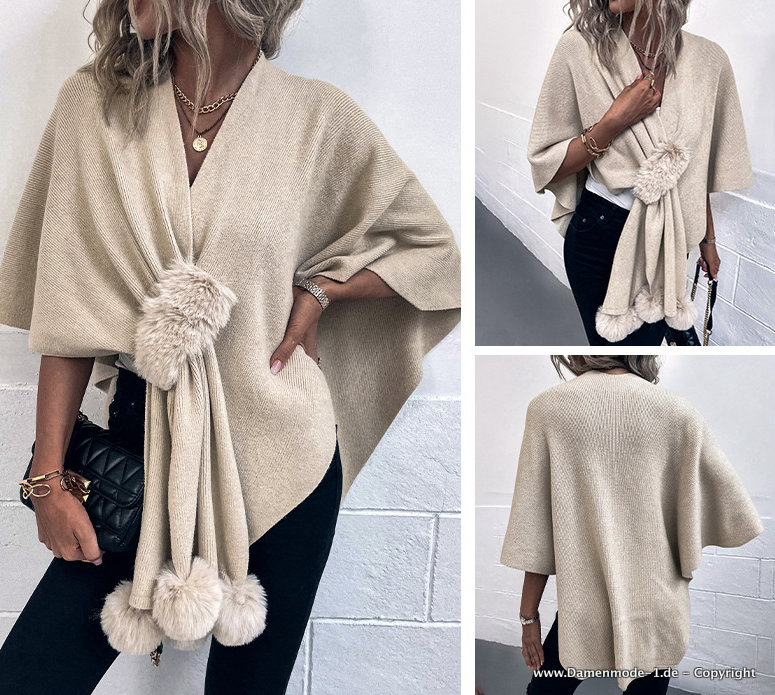 Damen Poncho Schal in Beige Elegant