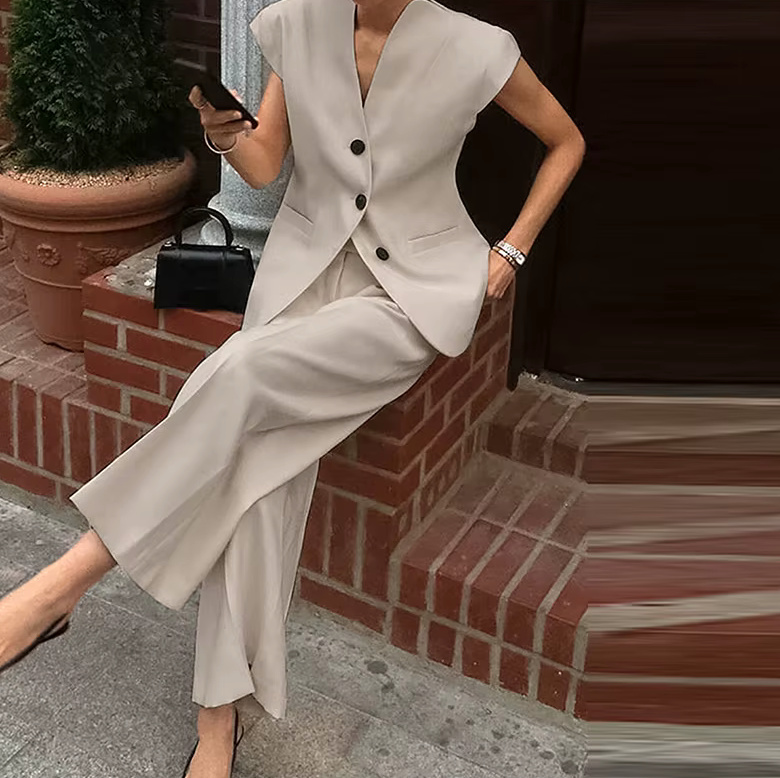 Elegant business two-piece 2025 for women in cream vest with Marlene trousers in a set