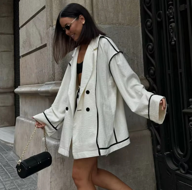 Summer Two-Piece 2025 Women’s Outfit in White Shorts with Long Blouse in Set