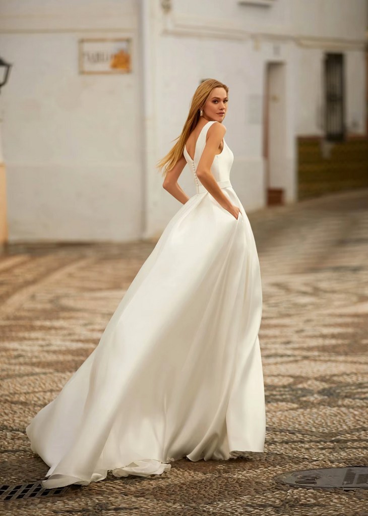 A Line Satin Wedding Dress Désirée Wedding Dress with V Neck and Train