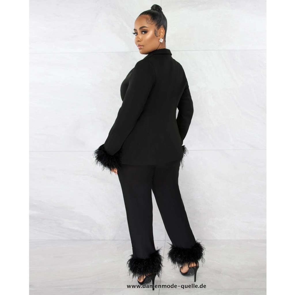 Blazer Anzug für Damen + Gerade Hose im Set Schwarz