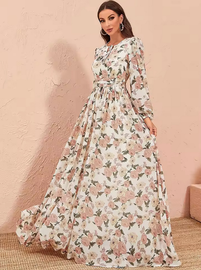 Long Sleeve Chiffon Maxi Summer Dress 2025 Dorothea with Floral Pattern
