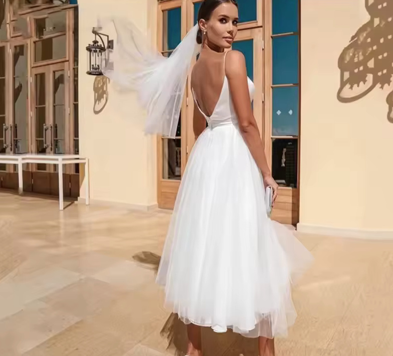 Spaghetti Strap Wedding Dress Franca Calf Length