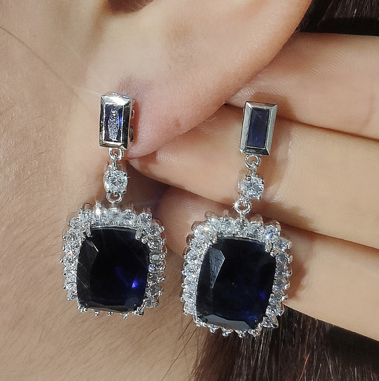 Bridal Earrings Dahlia Square in Silver Black Classic