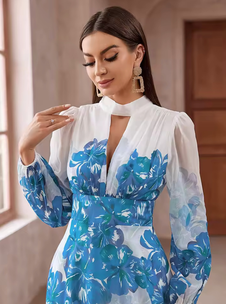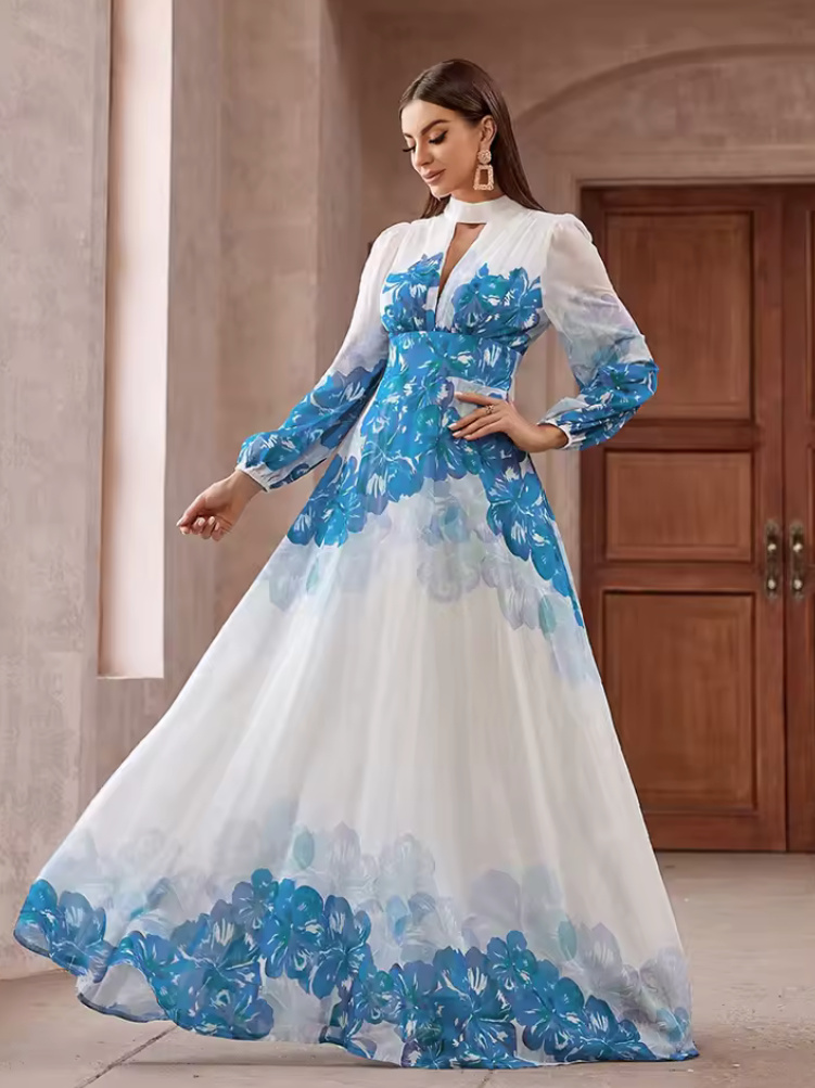Elegant Chiffon Maxi Dress 2025 Davide White with Floral Pattern