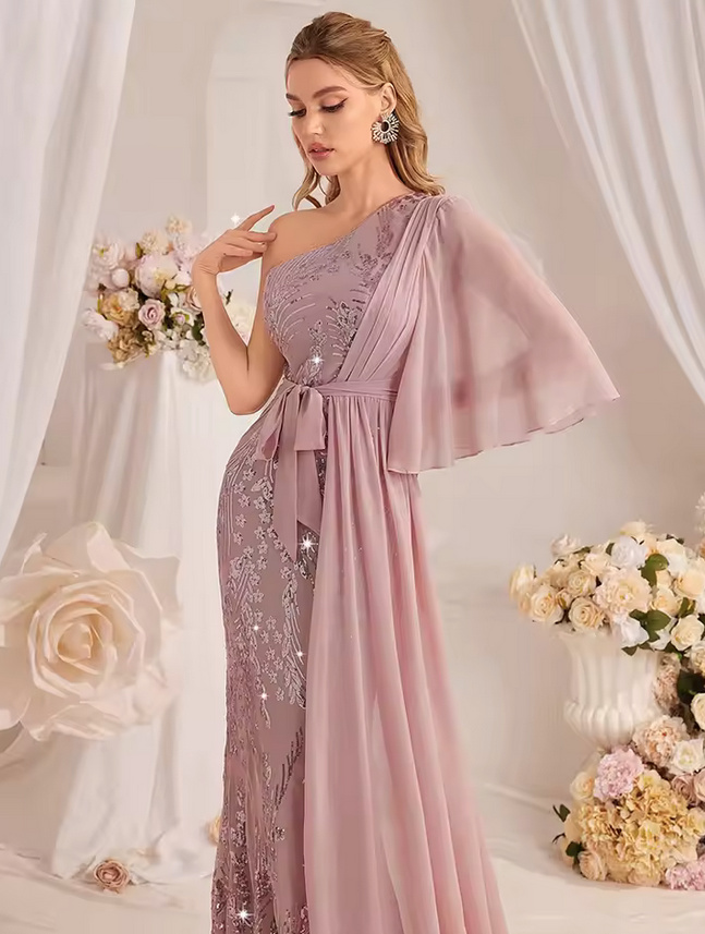 One Shoulder Evening Dress 2025 Daniela in Salmon with Tulle and Sequins