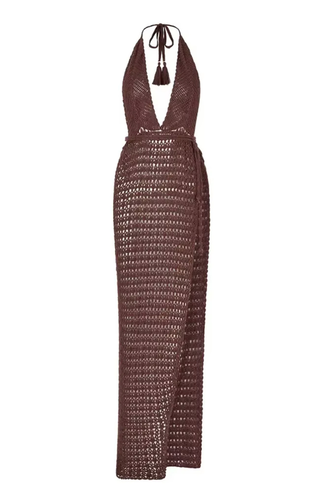 Sexy Cover Up Dress Beach Dress 2025 Crocheted in Brown