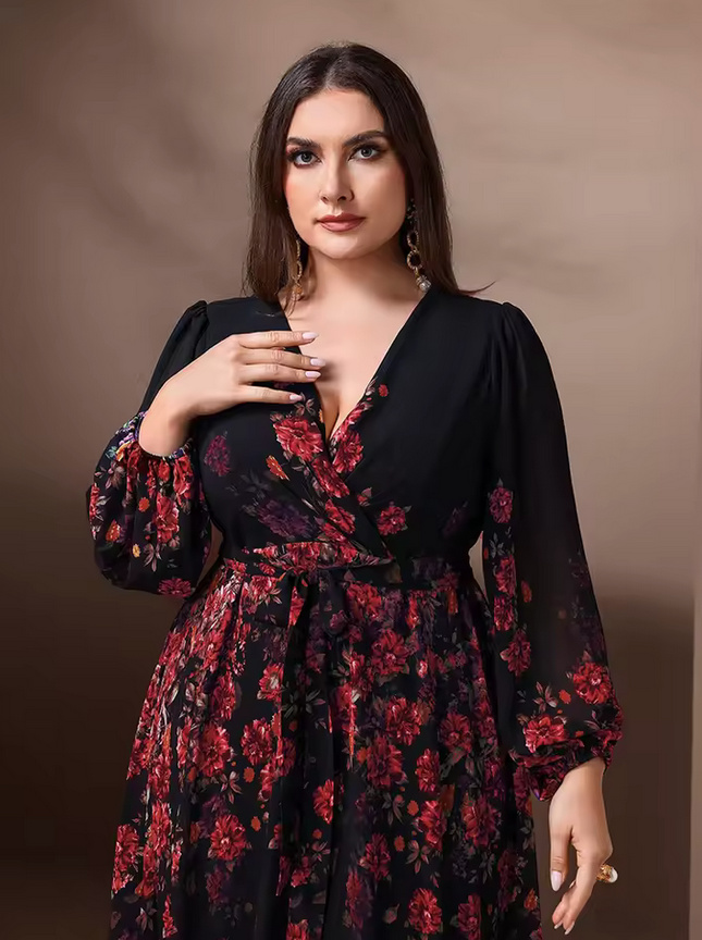 Elegant Plus Size Maxi Summer Dress 2025 Black with Floral Pattern