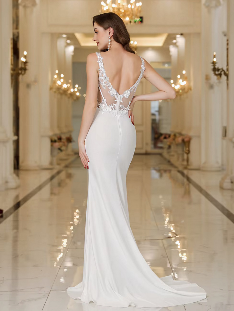 Fit and Flare Wedding Dress 2025 with Lingerie Top Lace and Train