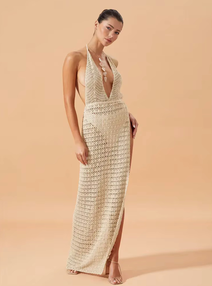 Sexy Cover Up Dress Beach Dress 2025 Crocheted in Cream