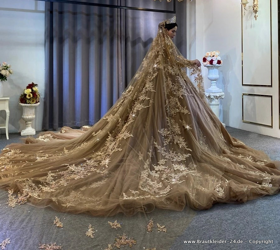 Ball Linie Prinzessin Brautkleid mit Schleppe Stickereien in Bronze Braun